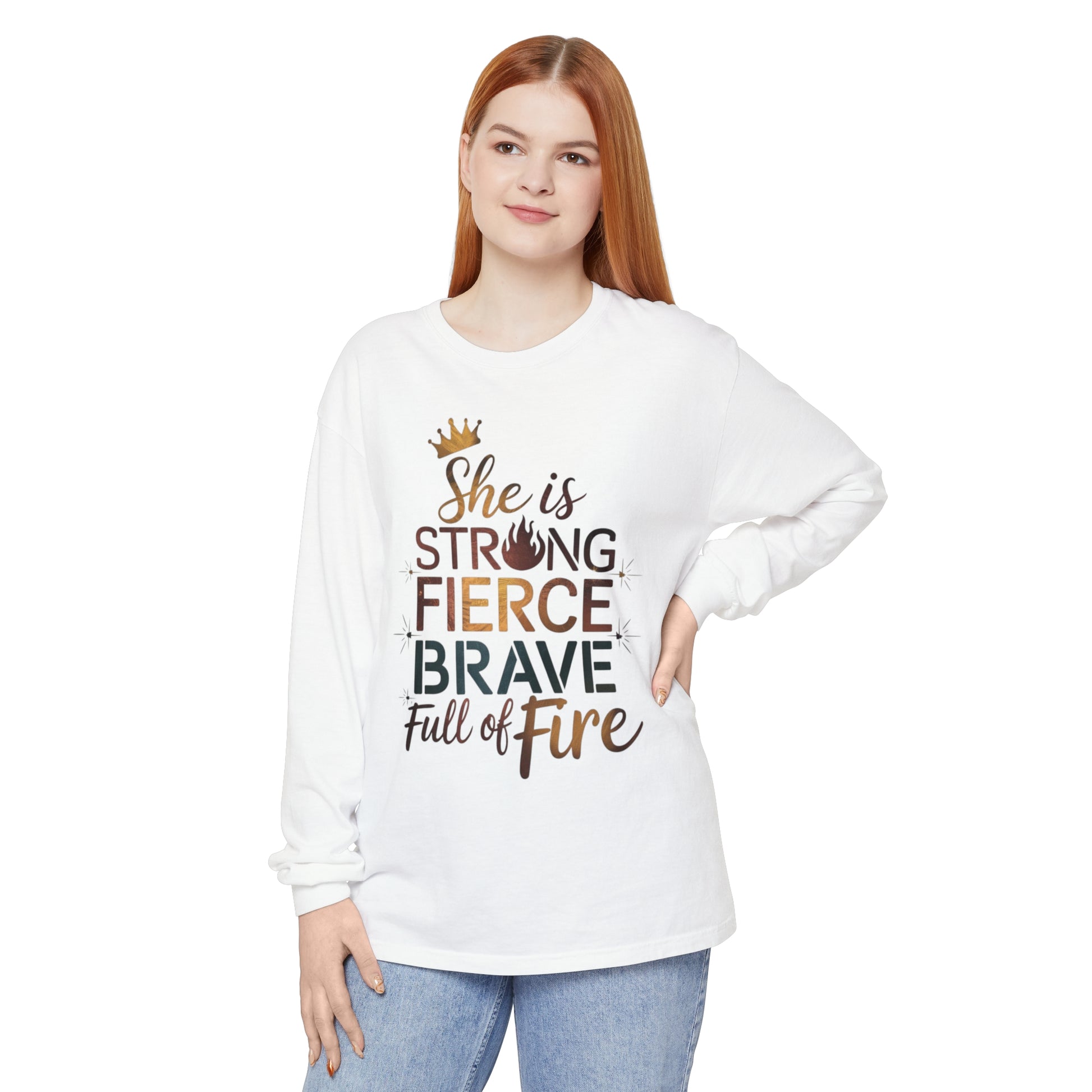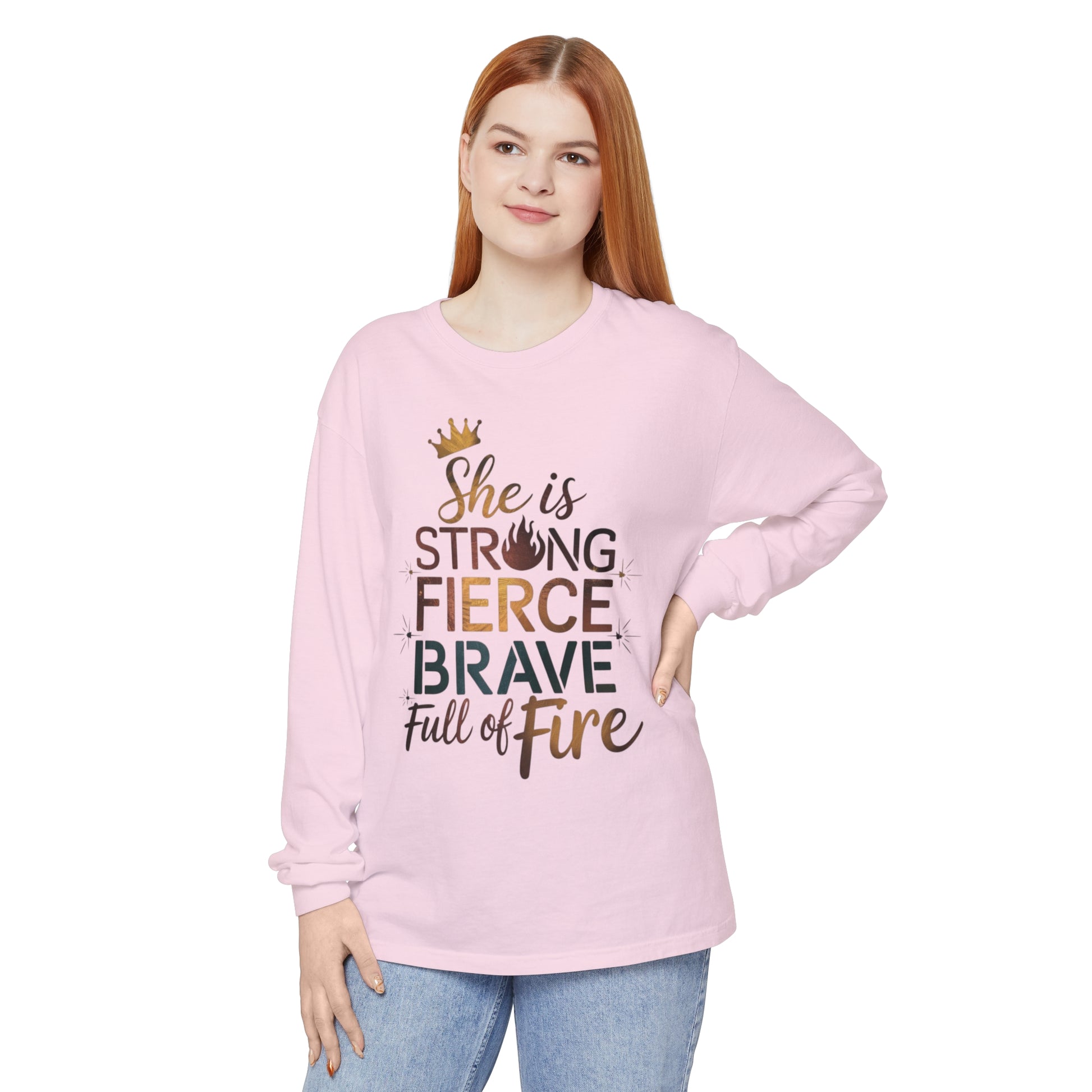 She Is Women Garment-dyed Long Sleeve T-Shirt
